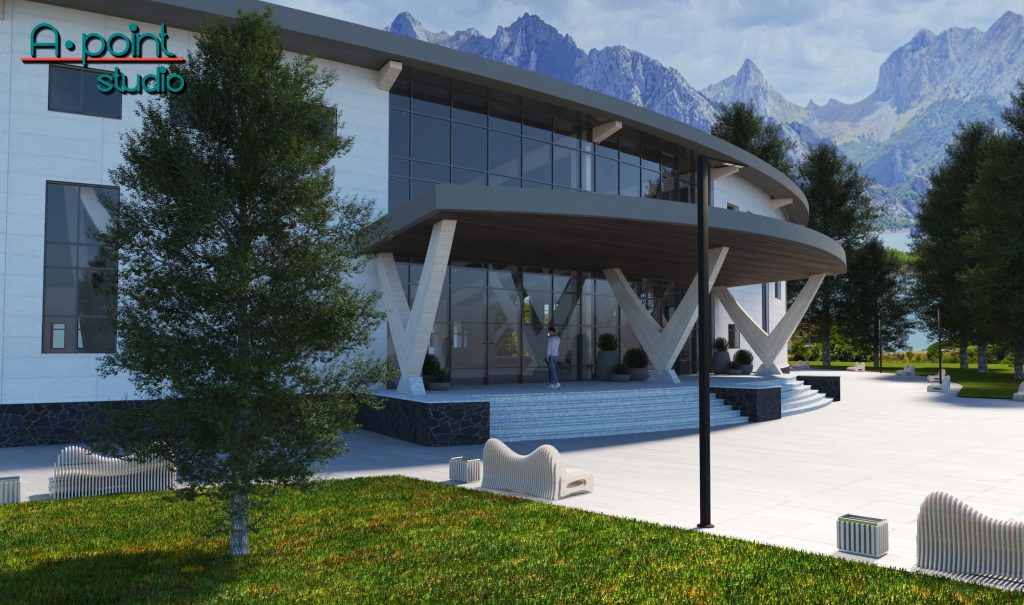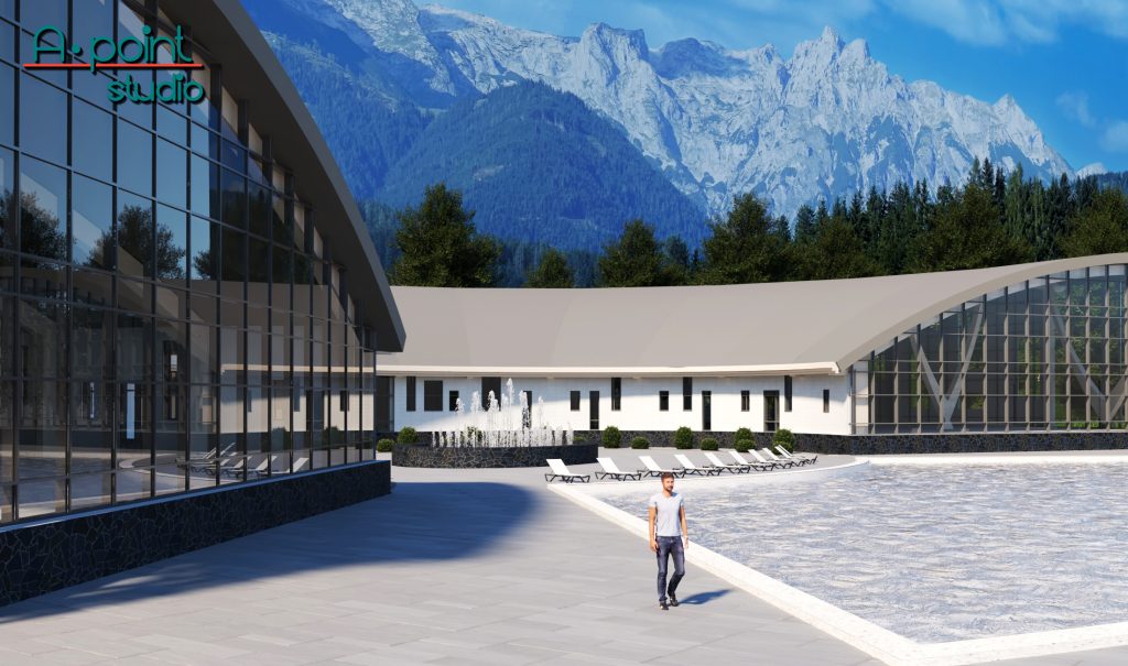 Площадь застройки ориентировочно 2000м.кв. Основные несущие элементы из гнуто-клеенных деревянных конструкций. Фундамент здания — монолитная железобетонная плита. Кровля — ПВХ-мембрана по деревянной стропильной системе со сплошным настилом. Комплекс включает в себя следующие функциональные зоны: банно-оздоровительная зона, зона плавательного бассейна, зона бытового обслуживания, зона общественного питания, досуговая зона, номерной фонд.